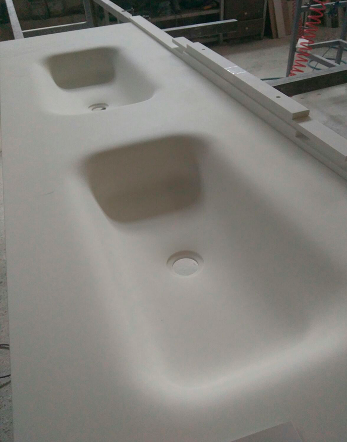 Un material muy versátil que se puede emplear tanto en la fabricación de encimeras, como fregaderos, duchas, lavabos, barras de bar, mostradores o paneles murales.